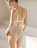 🔹 Design: Floral Lace, Hollow-Back, Sling-Style Bodysuit